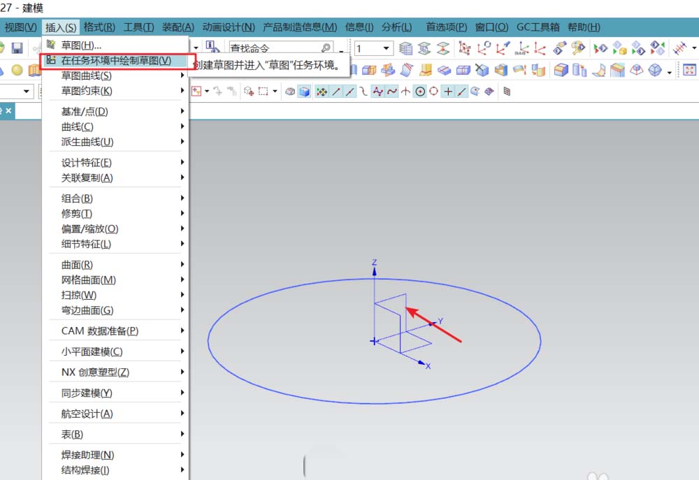 1、新建建模文件,在建模工作区中,选XY面作为草绘平面,绘出手链的俯视草图。