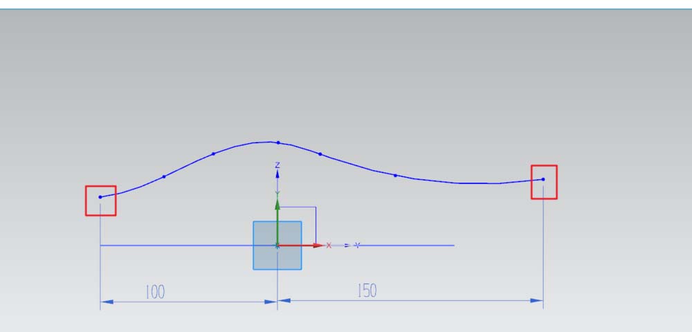 2、以XZ面,作为草绘平面,绘出手链的侧面草图。侧面为样条线,其长度要比俯视草图的最大数值大或者相等;不要小了,不然在进行组合投影时会得到开放的曲线。