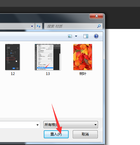 3、新建后选择置入对象,把刚才我们保存的树叶图片选择添加进来,树叶变成灰度图片,效果如图所示: