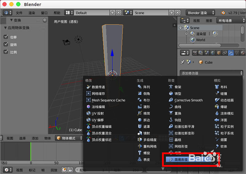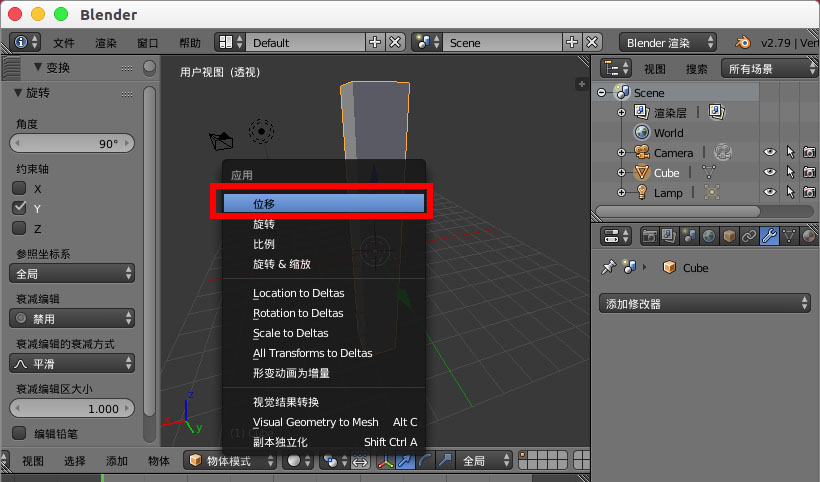 5、然后ctrl+a选择位移、接着在左边把位移、旋转、缩放都勾选上。