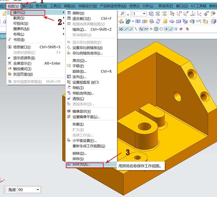 5、接下来,只要将这视图保存下来就可以了。鼠标选视图菜单栏,选操作找到另存为;在弹出的对话框中给当前视图取个名。确定即可。