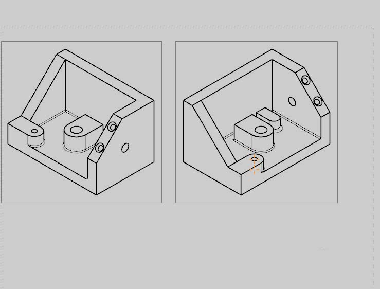 1、如图所示的模型,正等测图下是看不到内部还有个垫块的。所以如果在工程图中用正等测图,会是这样。达不到所要的要求。