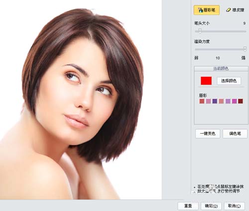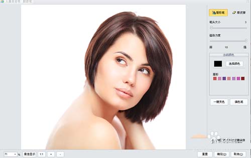 7、用唇彩笔给美女涂抹唇彩,如果涂抹在嘴边外可以用橡皮擦轻轻擦掉,涂抹好单击确定。