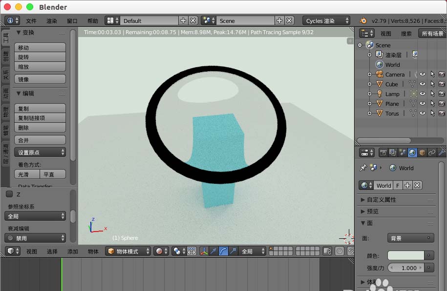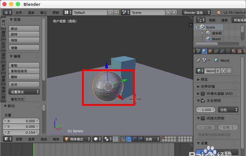 2、在里面创建一个球体模型。