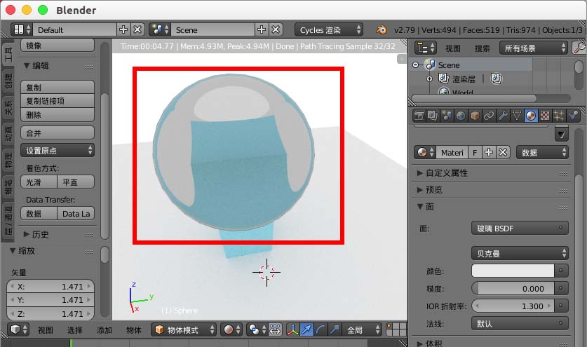 6、给放大镜模型添加玻璃BSDF 。