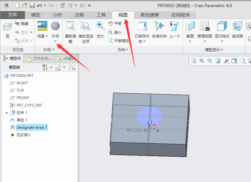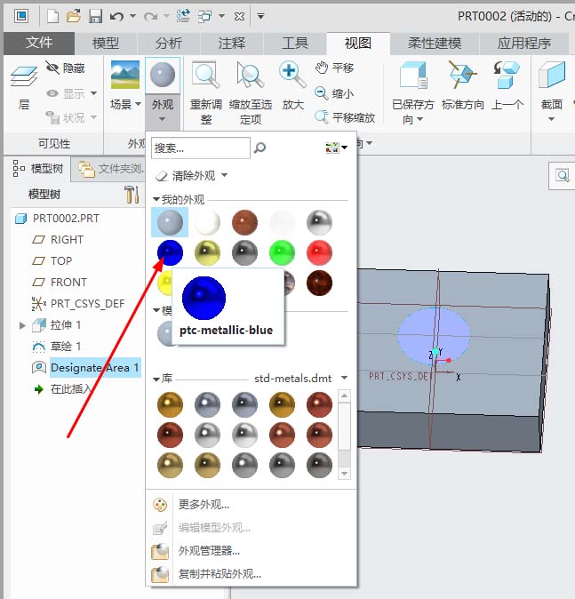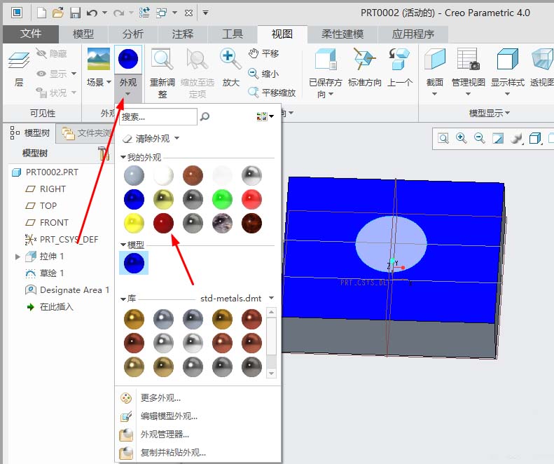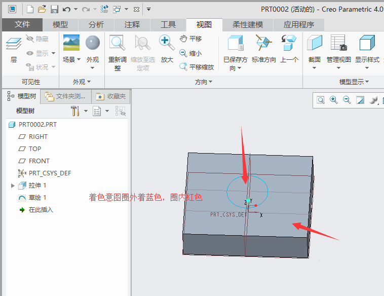 creo4.0曲面外观色一般会添加一种颜色,如果想要添加多种颜色,该怎么添加呢?下面我们就来看看在同一曲面显示两种颜色的技巧。