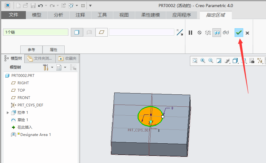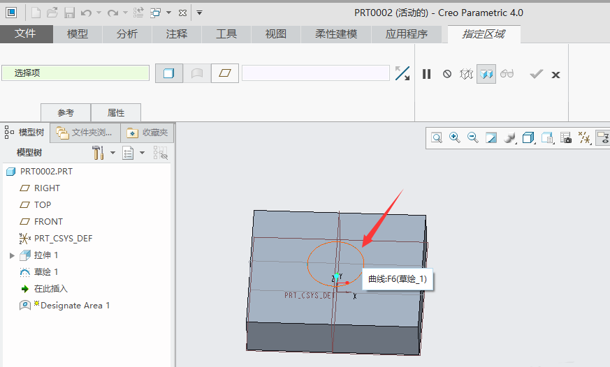 3、单击选择模型表面草绘的圈。
