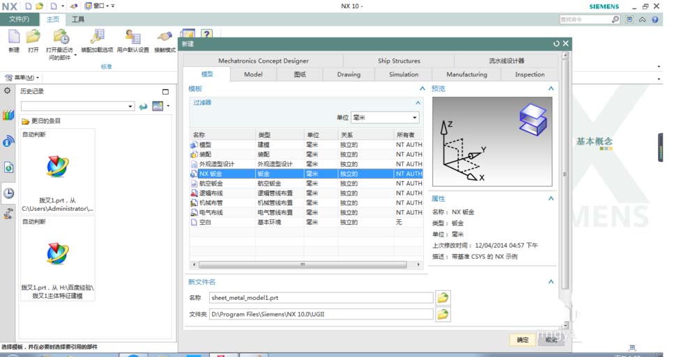 以上是第一种方式,直接建立NX钣金文件。