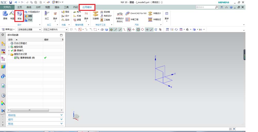 2、点击“应用模块”,在工具栏中找到“钣金”