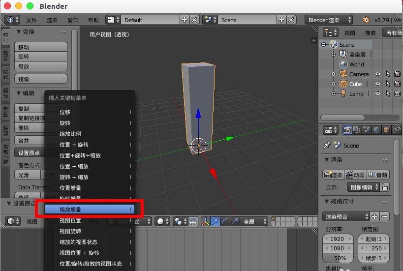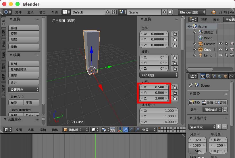 4、接着缩放立方体的比例,根据自己的需要设置。