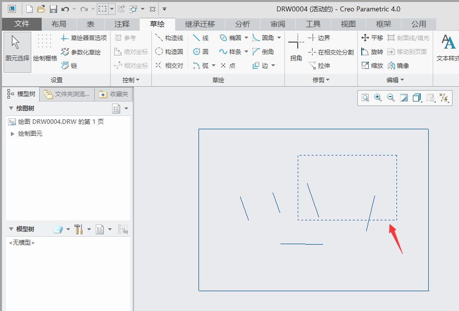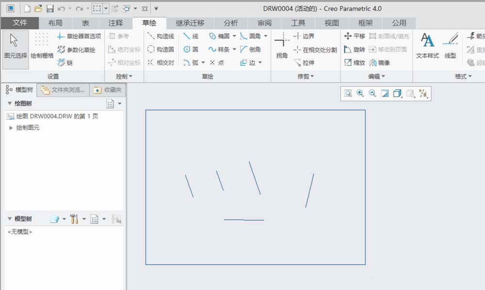 1、打开creo4.0软件,新建一个工程图文件,草绘几条直线如下图