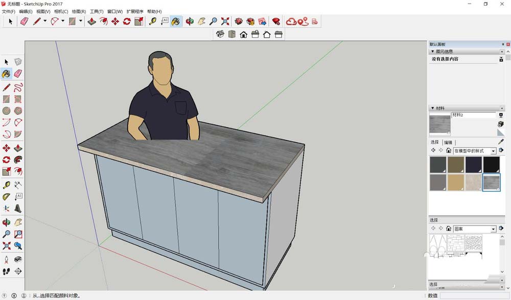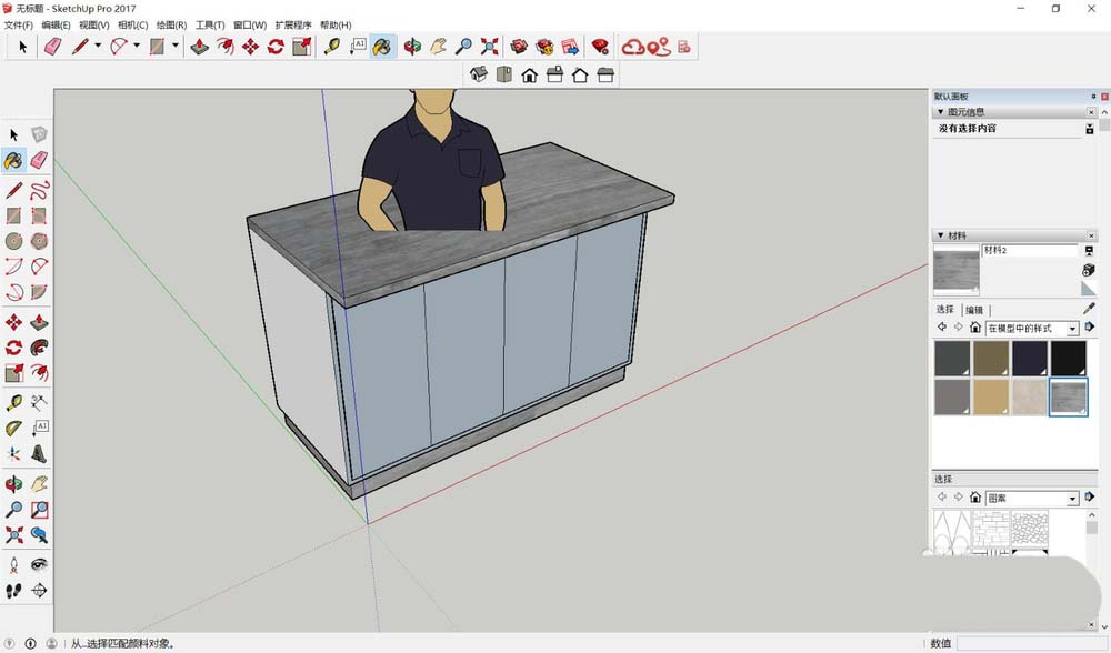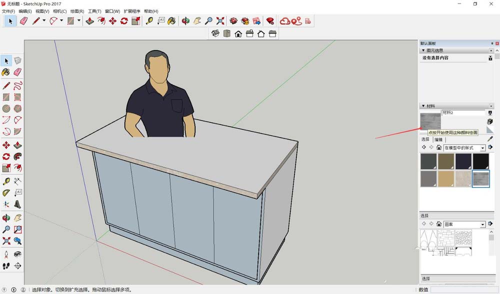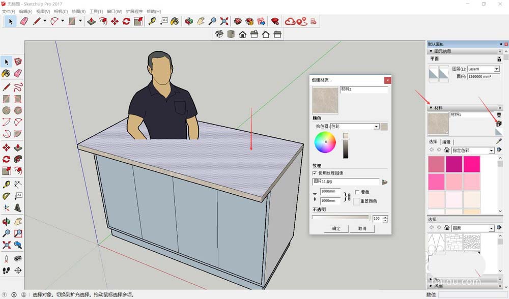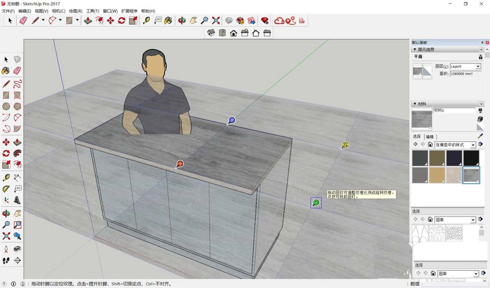 5、点击缩略图,鼠标会变成油漆桶,点击台面,即材质贴到了台面上,但是比例尺寸不合适,可以调整。