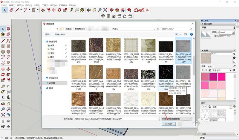 3、在创建材质....”对话框中,单击“浏览材质图像文件”,打开自己相应的材质库,在立面挑选一个合适的材质,单击“打开”。