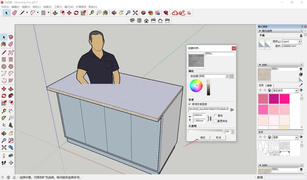 2、单击选中吧台的一个平面,单击“材料”下的“创建材质....”按钮,弹出“创建材质....”对话框。