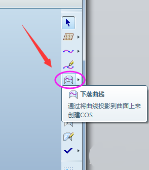 3、进入“造型”界面后,点击工具栏的“下落曲线”按钮,如下图所示。