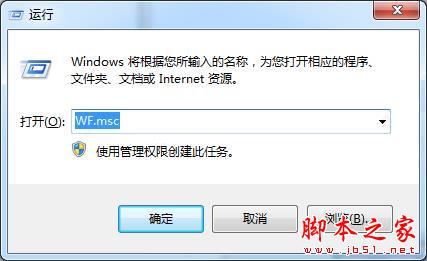1.小编以win 7系统为例,按下win键+R键,调出运行,输入WF.msc,然后回车。