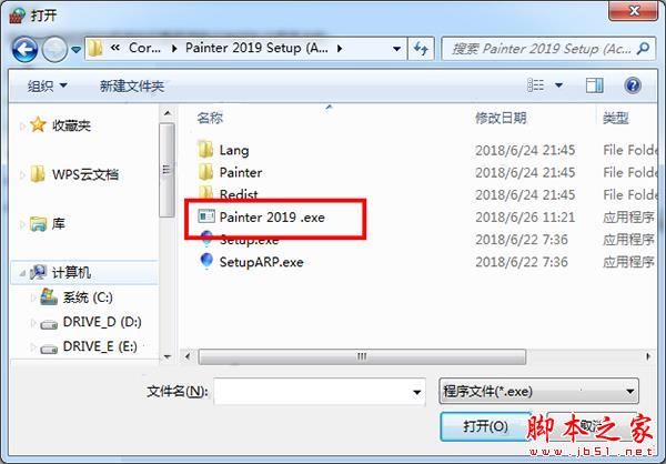 5.选择待屏蔽的exe文件,所以是主程序(Painter 2019.exe),然后点击“打开”
