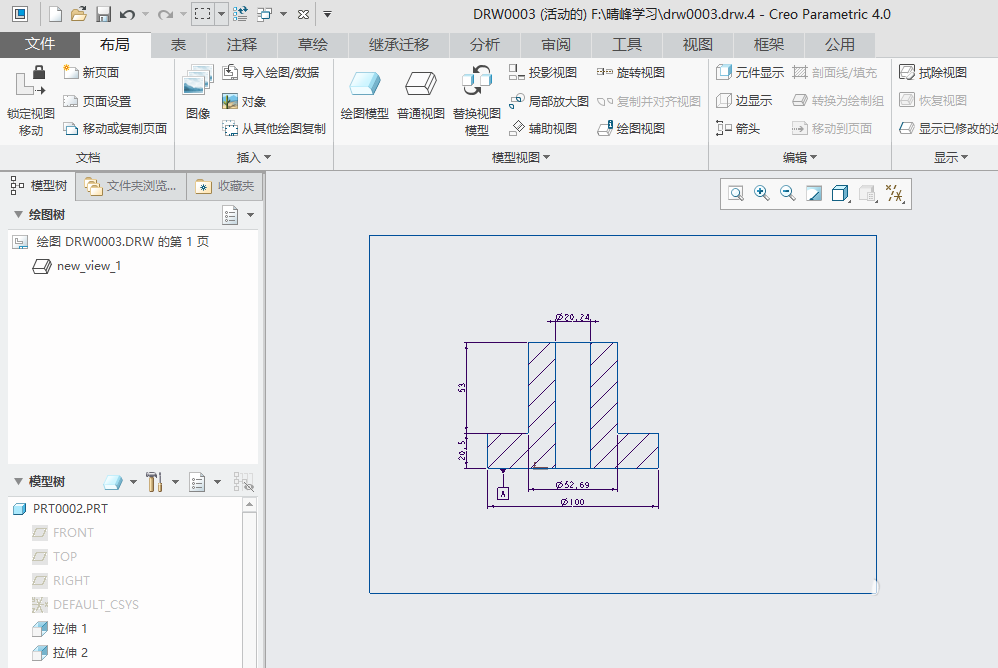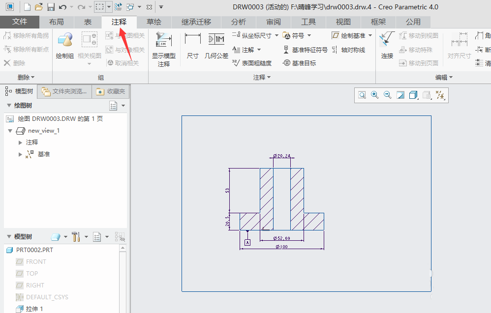 1、打开creo4.0软件,打开一个工程图文件。
