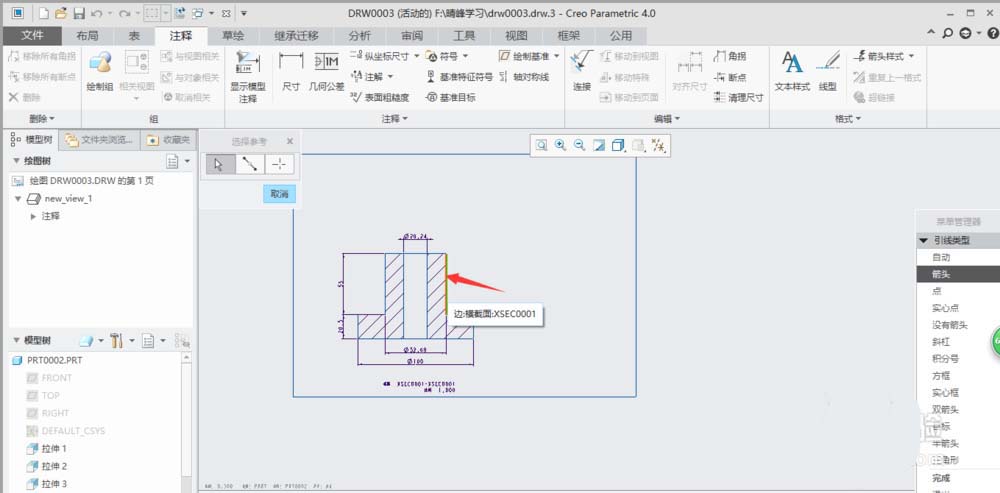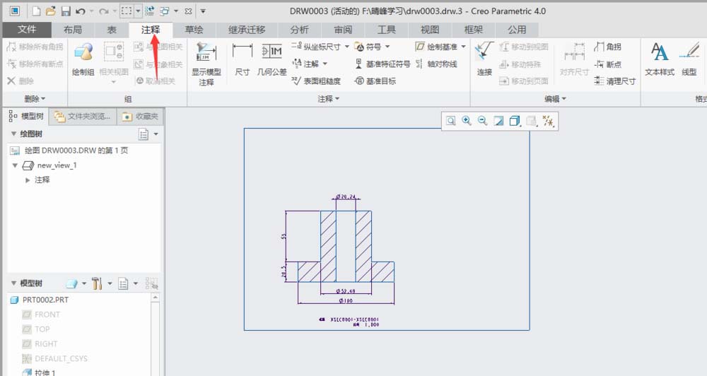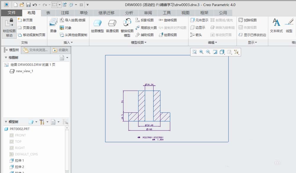 1、打开creo4.0软件,打开一个工程图文件。