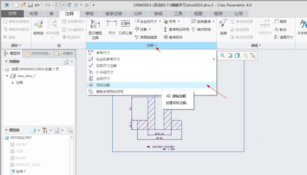 creo4.0中想要给图纸进行球标注解,该怎么实现呢?下面我们就来看看手动创建球标方法。