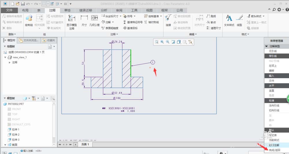 9、单击球标注解"菜单管理器"中的“完成/返回”。