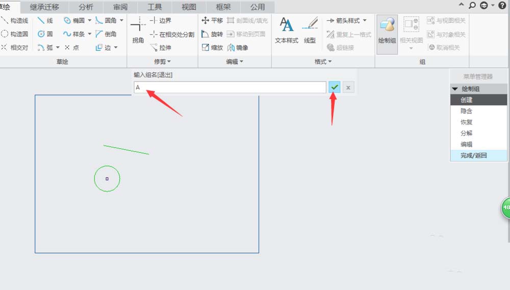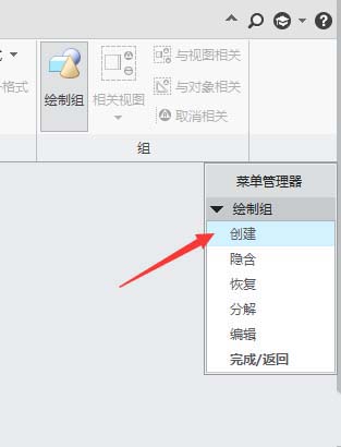 2、单击“绘制组”按钮。弹出“菜单管理器”。
