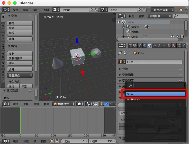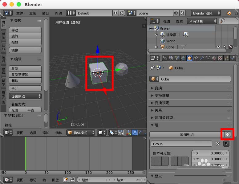 4、然后点击 添加到组选择Group把立方体模型添加进入。