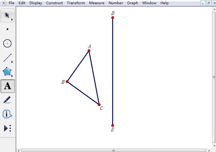 1、绘制△ABC和线段DE。选择左侧侧边栏“线段工具”,在画板工作区域绘制△ABC和线段DE,如下图所示。
