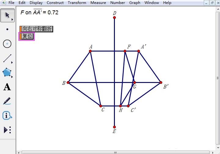 5、依次选中FA’,执行“编辑”——“操作类按钮”—“移动”命令,这样就得到一个按钮,将按钮标签修改为:向右对称翻折;同样地,依次选中FA,执行“编辑”——“操作类按钮”—“移动”命令,得到一个按钮,将按钮标签修改为:复位,速度:高速。