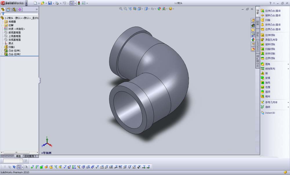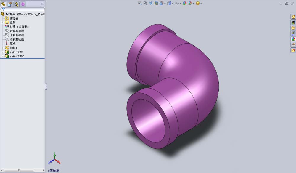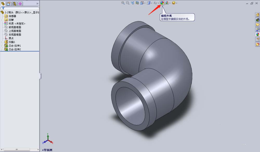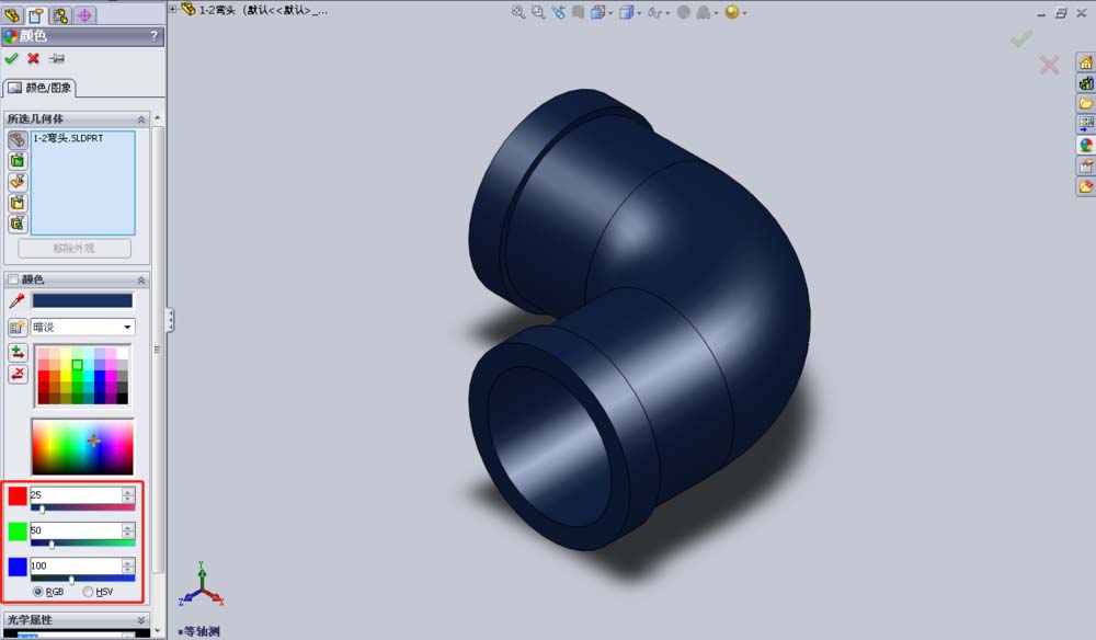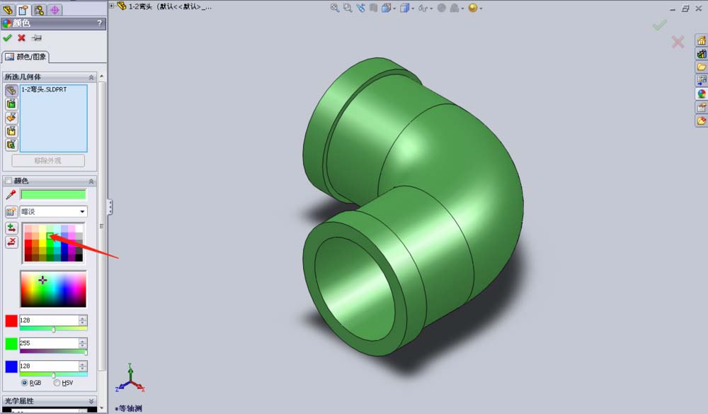 SolidWorks建模的1/2弯头零件,想要给弯头上色,该怎么渲染颜色呢?下面我们就来看看sw渲染零件颜色的教程。