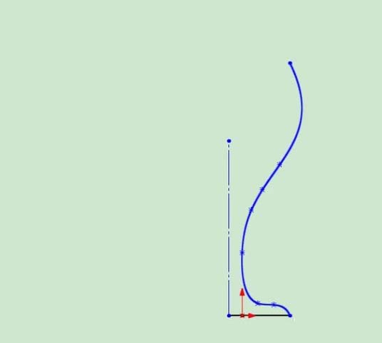 4、画出高脚杯的轮廓,注意还要用虚线画出旋转轴。