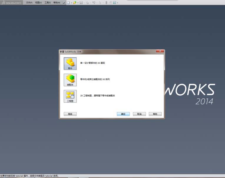 1、打开SolidWorks软件,新建一个“零件”文件
