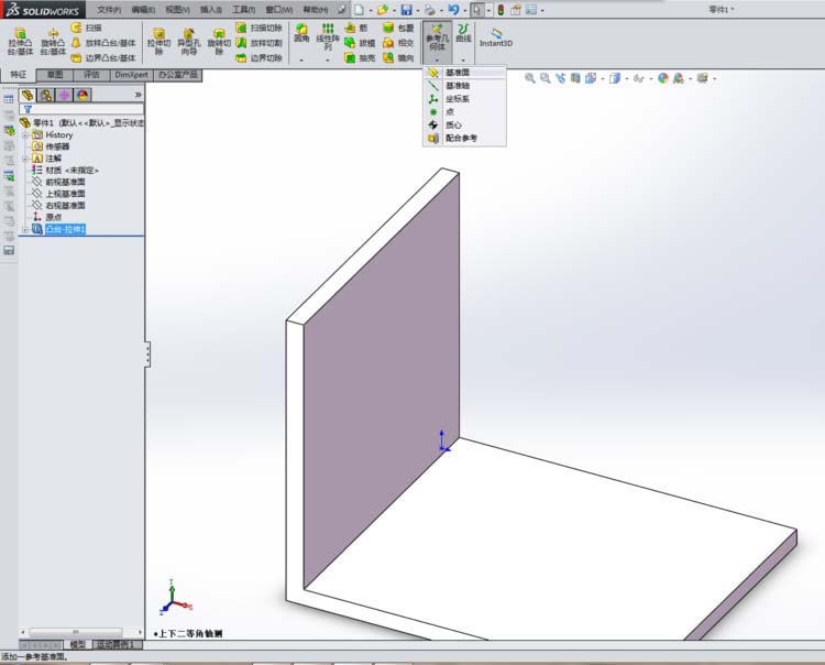 2、找到“基准面”图标,激活它,创建一个新的基准面。
