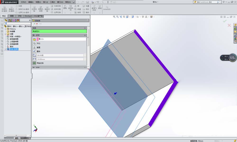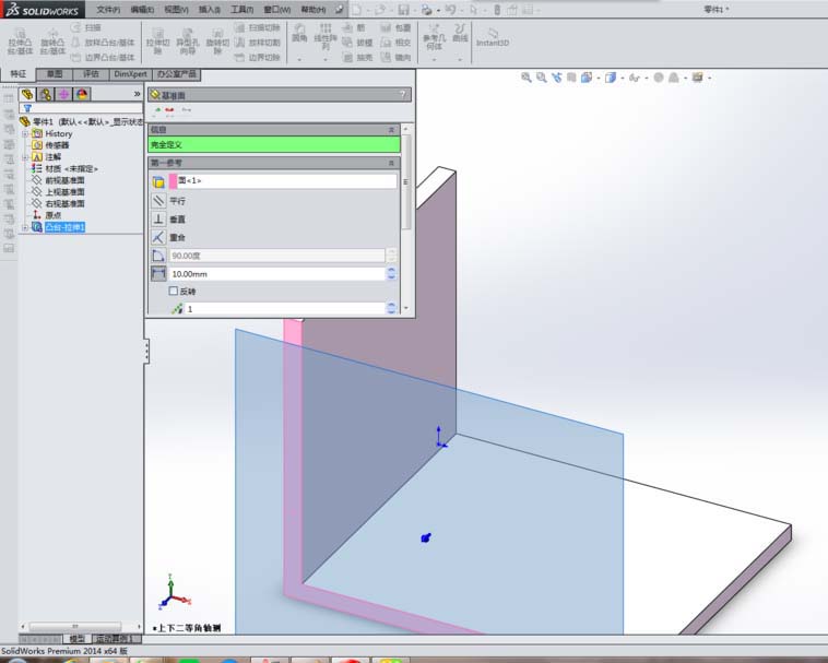 5、点√,一个新的基准面就创建完毕了。如下图所示。解释一下,下图中的是基准面2,那是因为笔者操作太快,创建基准面1的时候忘了截图,所以重新来过一遍,就成了基准面2了。