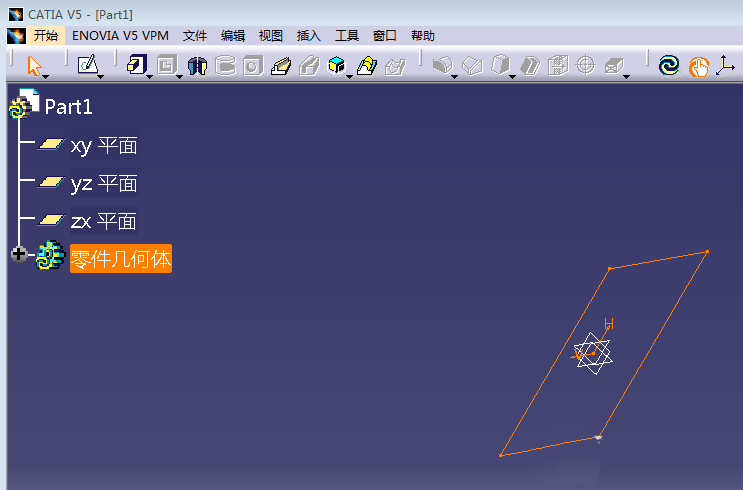 1、打开CATIA,进入建模操作界面,然后依据我们之前讲述的方法进入草图操作界面
