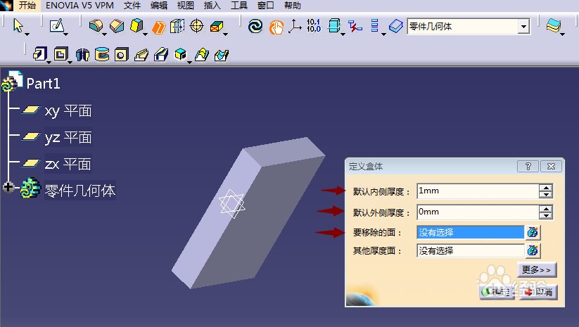 CATIA中绘制三维零件很简单,今天我们就来介绍关于CATIA中盒体命令的使用方法,请看下文详细介绍。