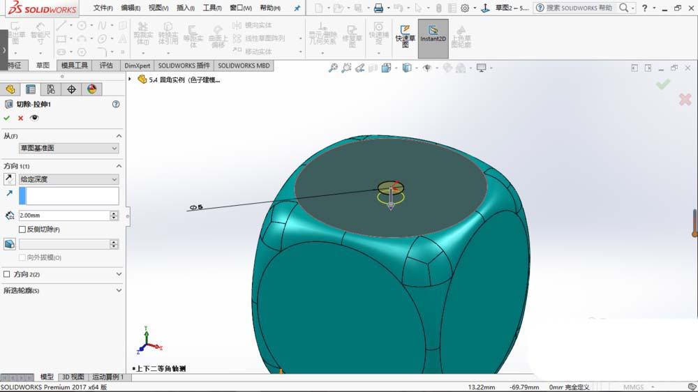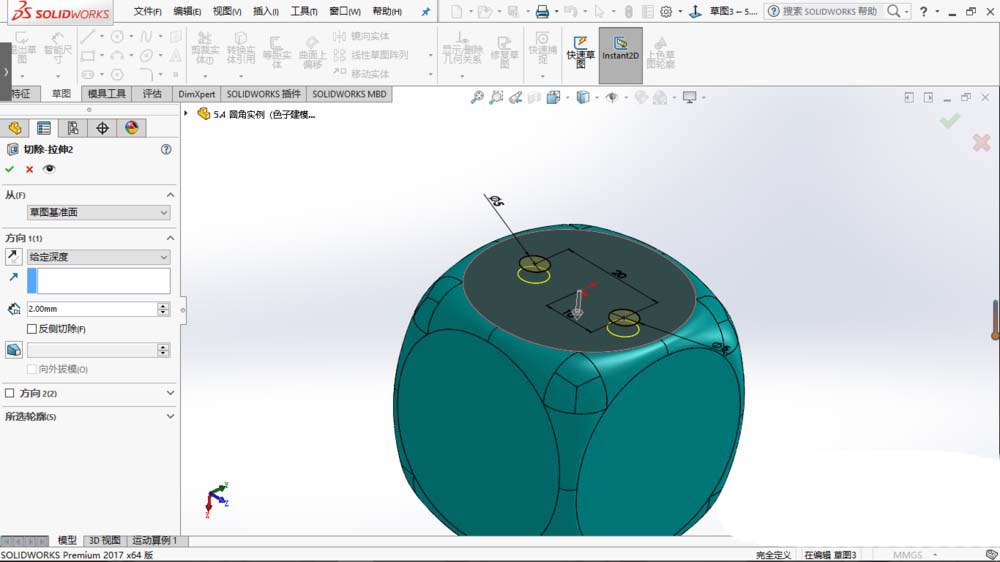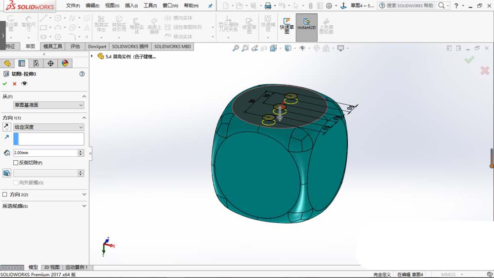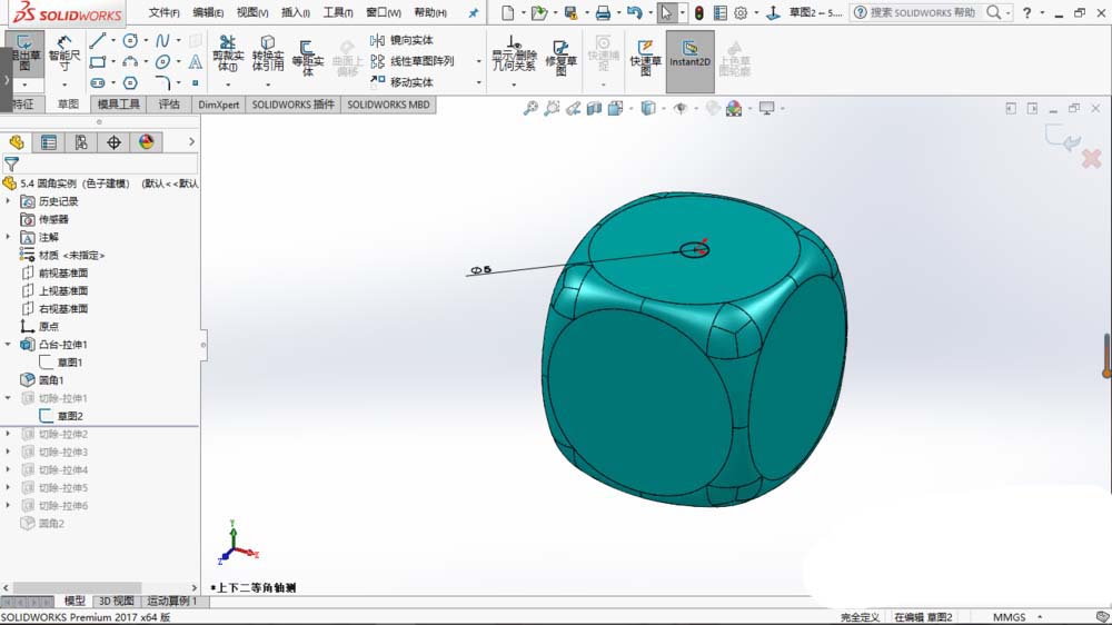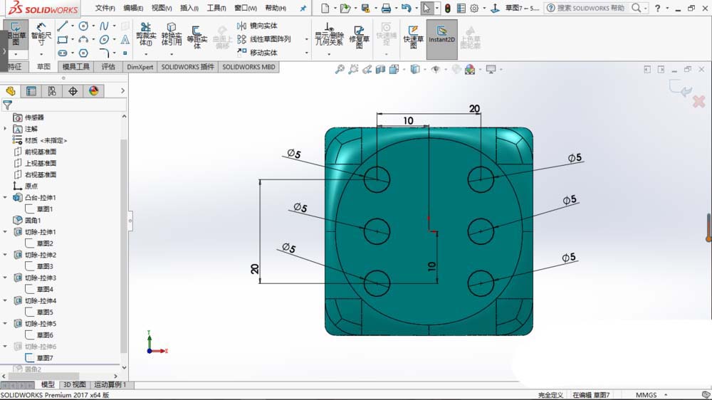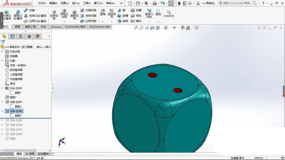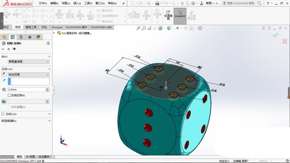 solidworks2017想要建模立体的骰子,也叫筛子,该怎么建模呢?下面我们就来看看详细的教程。