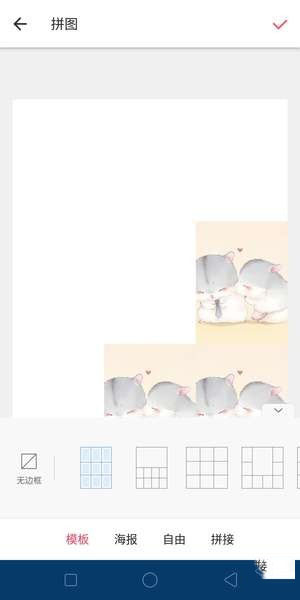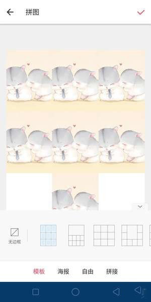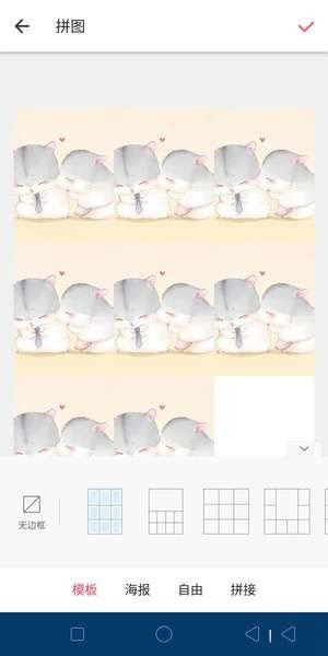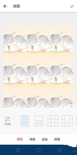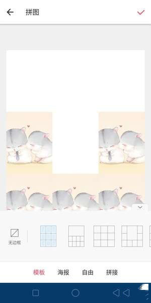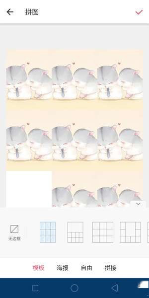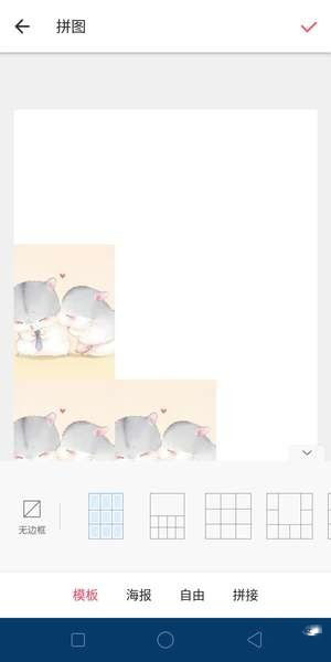 在美图秀秀首页点击【拼图】,上传9张图片,拼图排在第6、8、9位置,其他位置放白图,然后点击【开始拼图】这里记得选择【无边框】的【九宫格】模板,完成后点击右上角的【√】即可保存