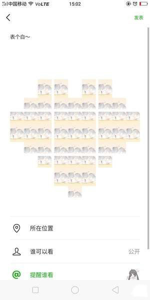 9张拼图都制作完成后,按照排列顺序发布朋友圈,就可以呈现心形效果了。