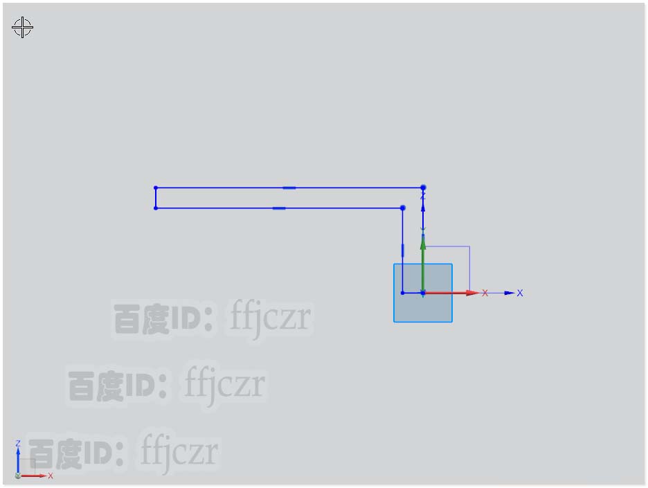 3、再次选用拉伸,在XZ面上绘出主体上部的截面线。此截面线为直角三角形,其右端点与L主体右端对齐。具体数值如图所示。