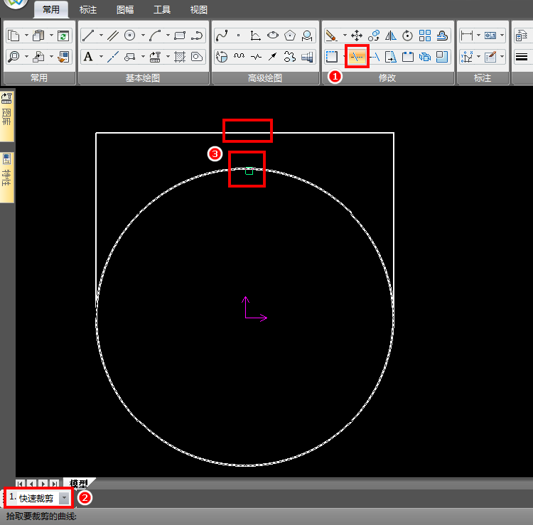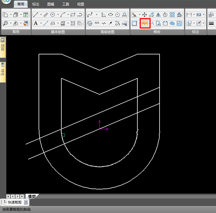 13、使用快速裁剪,裁掉多余的线条,裁剪结果如图;