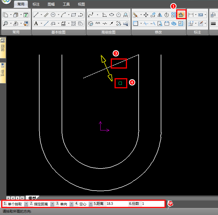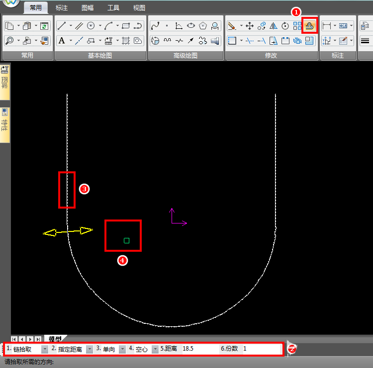 5、使用等距线命令,链拾取图形,向内偏移18.5;