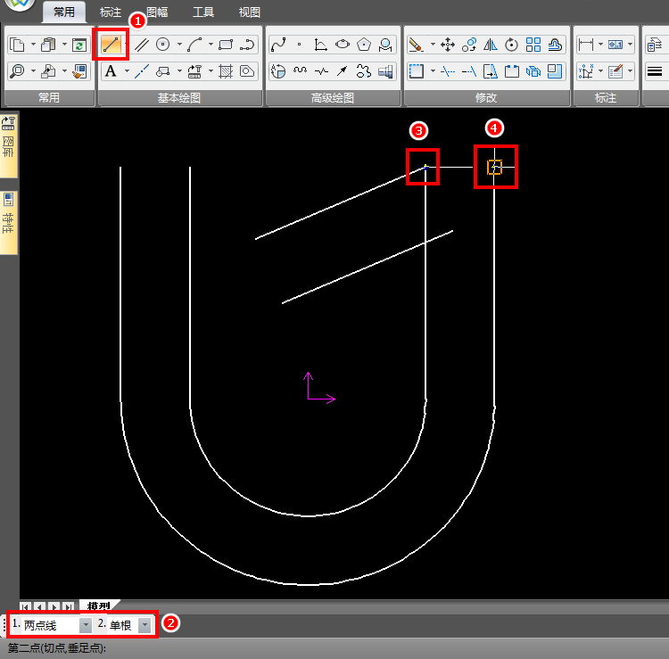 8、使用直线命令连接右边竖直直线上面的两个端点;
