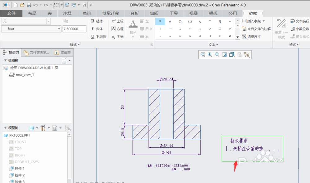 creo4.0图纸需要添加注解,刚刚我们介绍了引线注解的添加方法,现在我们介绍无引线注解的添加方法。