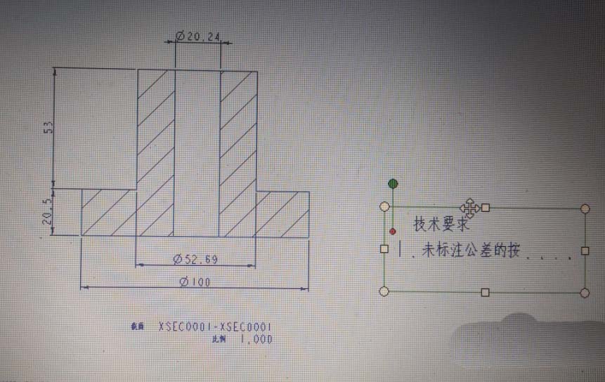 5、输入注解(比如:技术要求 1.未标注公差按....)。