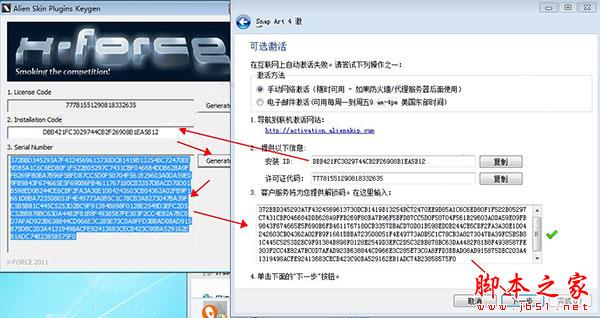 6、运行安装目录内的License Activation Tool.exe,将注册机生成的license code输入到License Activation Tool界面,继续将intsalliaton code输入到注册机,点generate,生成serial number,并将serial number输入到注册界面,点next,如下图所示: