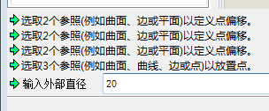 5、输入管道的外径,壁厚,在出现的菜单栏中依次选择“单一半径/整个阵列/添加点”,
