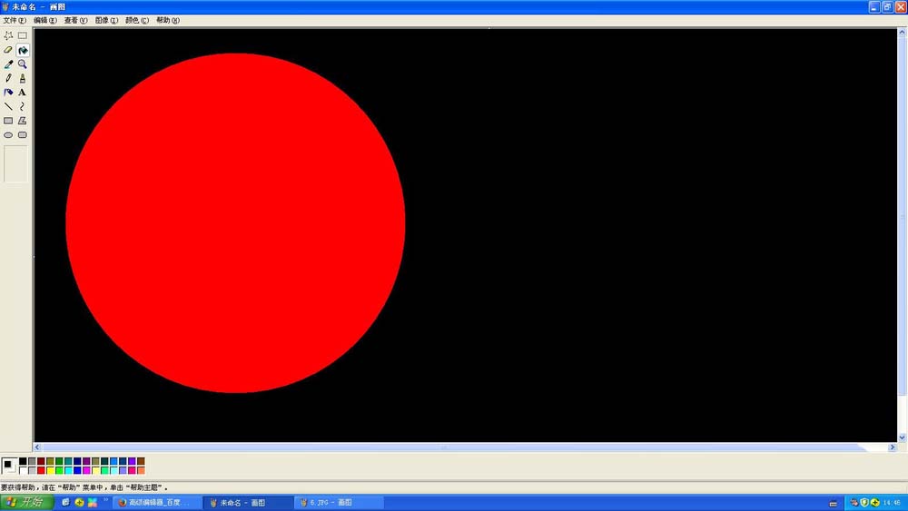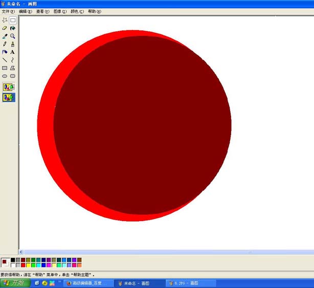 7、把背景填充回白色,把刚刚画出的任意颜色圆用选择工具选择拖到红圆内,也填充白色。(我的任意颜色圆不合适,慢慢调整就好)。