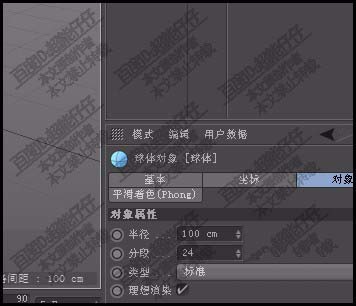 3、接着再创建一个球体基础物体。来到球体属性窗口