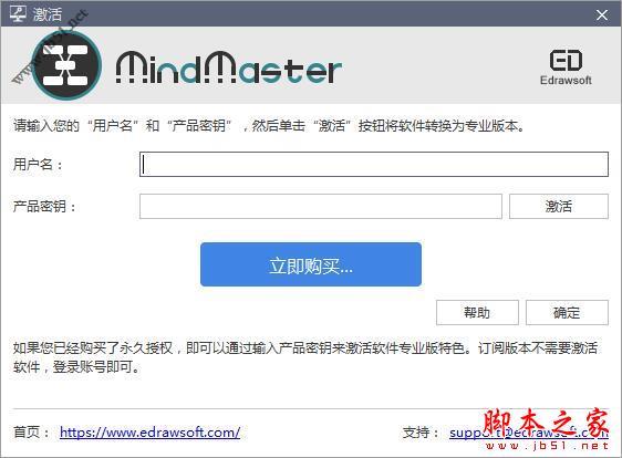7、在“帮助”选项中选择“激活”,输入自己的用户名(自己随便起),然后输入下方提供的激活码,成功激活后即可升级成专业版使用。